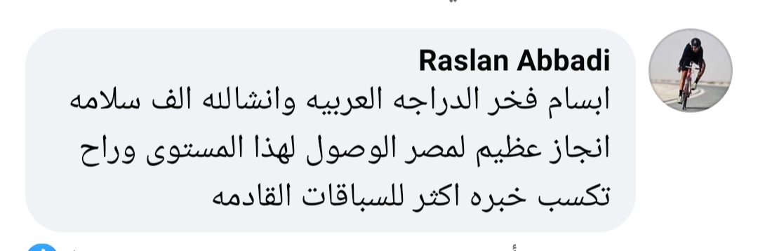 وكتب حساب في تعليق: "ابتسام فخر الدراجة العربية، وإن شاء الله ألف سلامة، إنجاز عظيم لمصر الوصول إلى هذا المستوى".