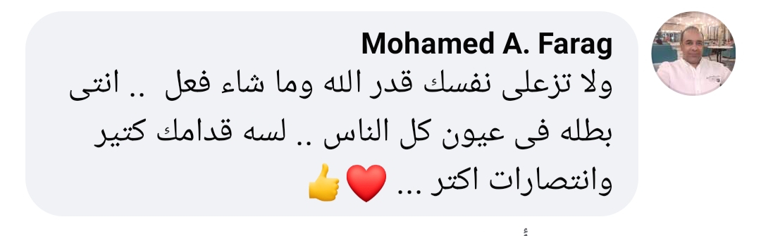 وأضاف آخرون: "قدر الله وما شاء فعل، انتي بطلة في عيون كل الناس لسه قدامك انتصارات كتير".
