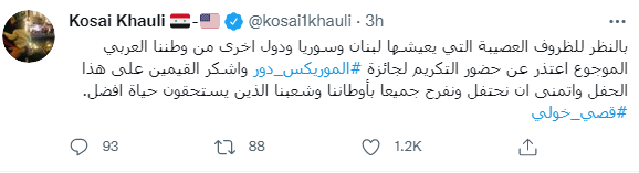 واعتذر الفنان اللبناني قصي خولي عن حضور التكريم وتسلمه الجائزة، وكتب عبر حسابه الشخصي على موقع التغريدات القصيرة تويتر: بالنظر للظروف العصيبة التي يعيشها لبنان وسوريا ودول أخرى من وطننا العربي الموجوع أعتذر عن حضور التكريم لجائزة الموريكس دور وأشكر القائمين على هذا الحفل، وأتمنى أن نحتفل ونفرح جميعًا بأوطاننا وشعبنا الذين يستحقون حياة أفضل”.