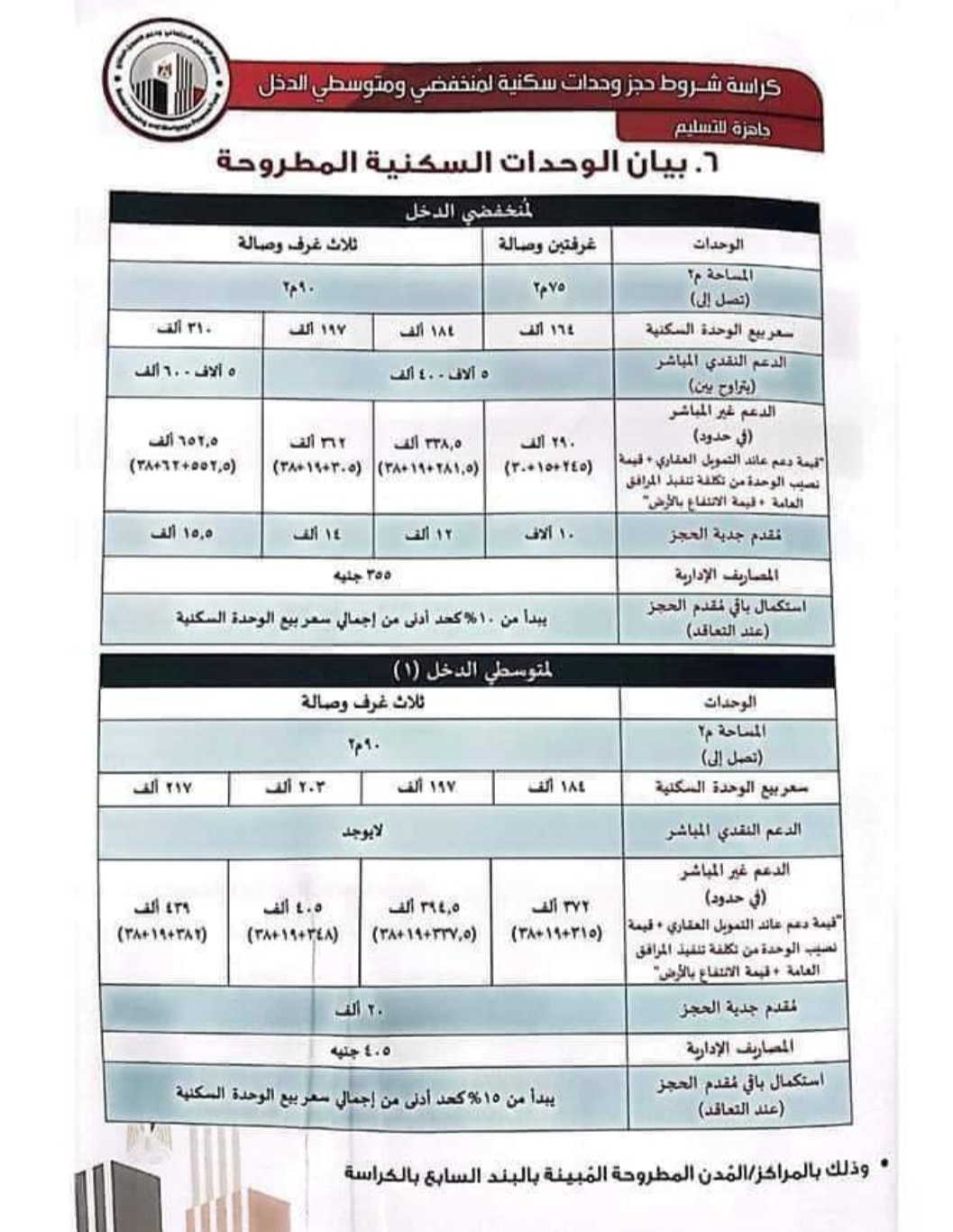 أولا: يتم سداد جدية الحجز عند سحب كراسة الشروط من مكتب البريد وتبلغ 10 آلاف جنيه للشقة 70 مترًا.