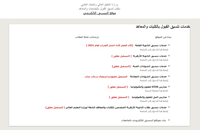 خطوت تسجيل تنسيق الجامعات 2021