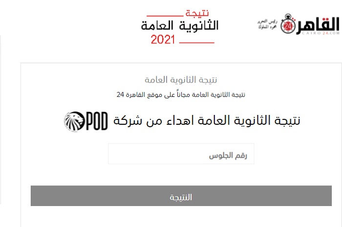 ويمكن للطلاب الاستعلام عن نتيجة الثانوية العامة 2021 من خلال موقع القاهرة 24 اضغط هنا، ثم سجل رقم الجلوس واضغط على “النتيجة”، وسوف تظهر نتيجة الثانوية العامة 2021 الخاصة بصاب رقم الجلوس المكتوب.