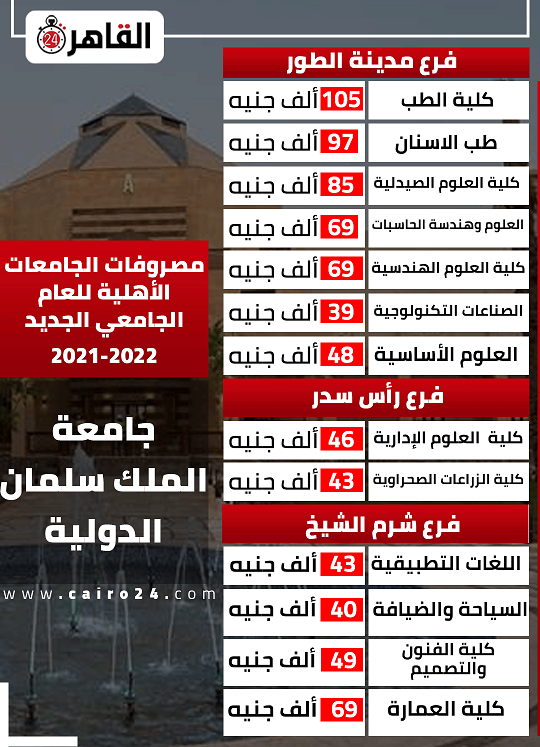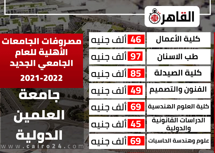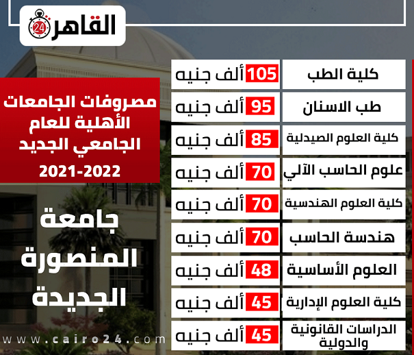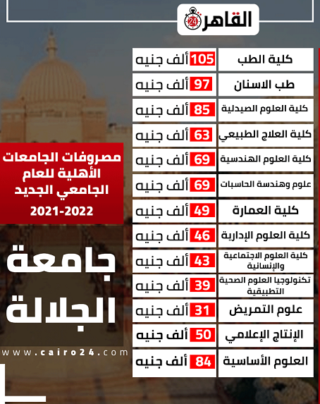 إنفوجراف عن مصروفات الجامعات الأهلية 2021