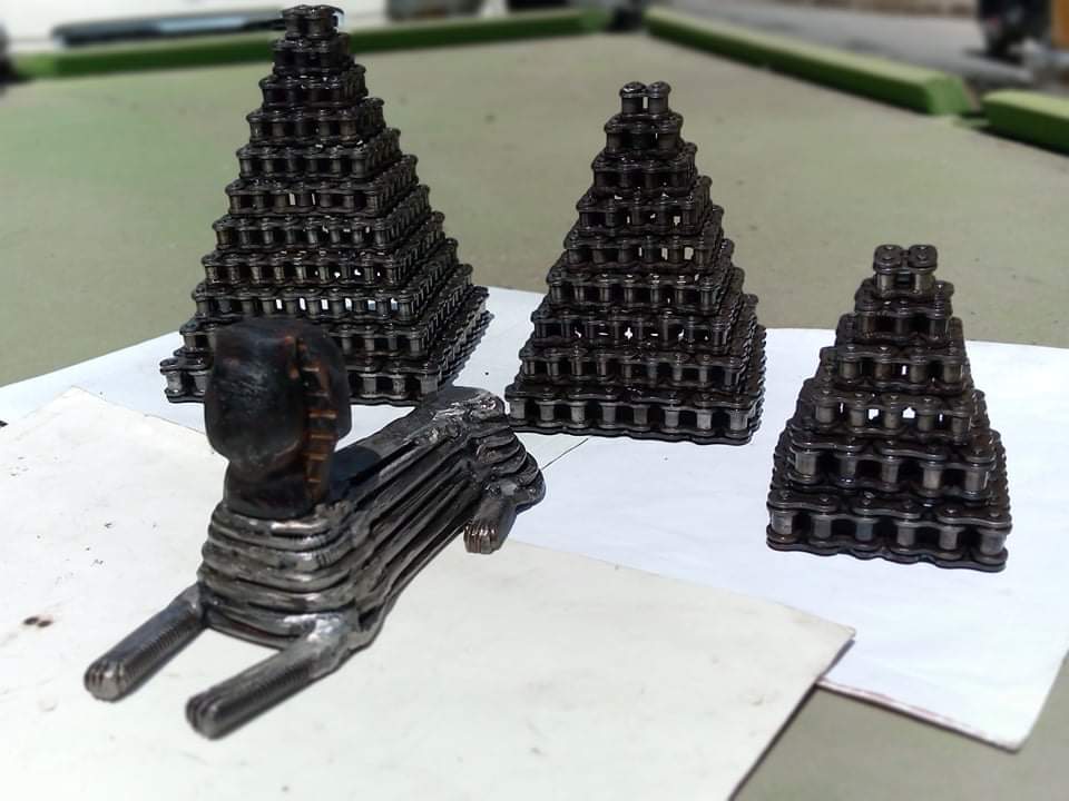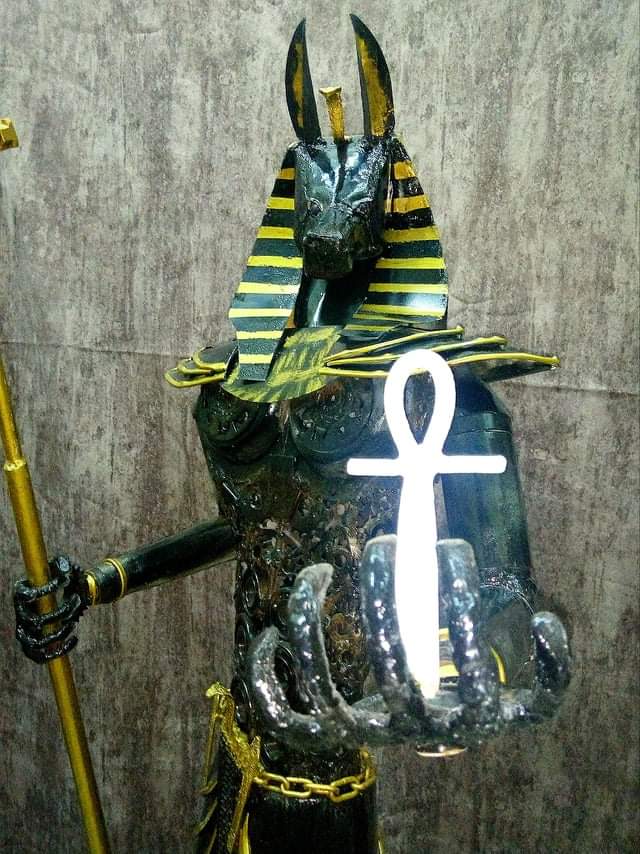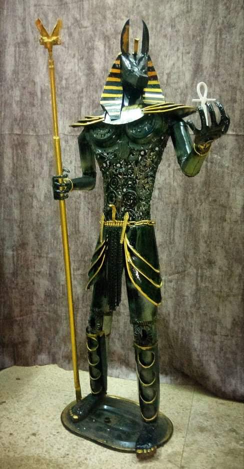 الخردة كنز لا يفنى.. شاب يبدع في تحويلها إلى تمثال أنوبيس | صور