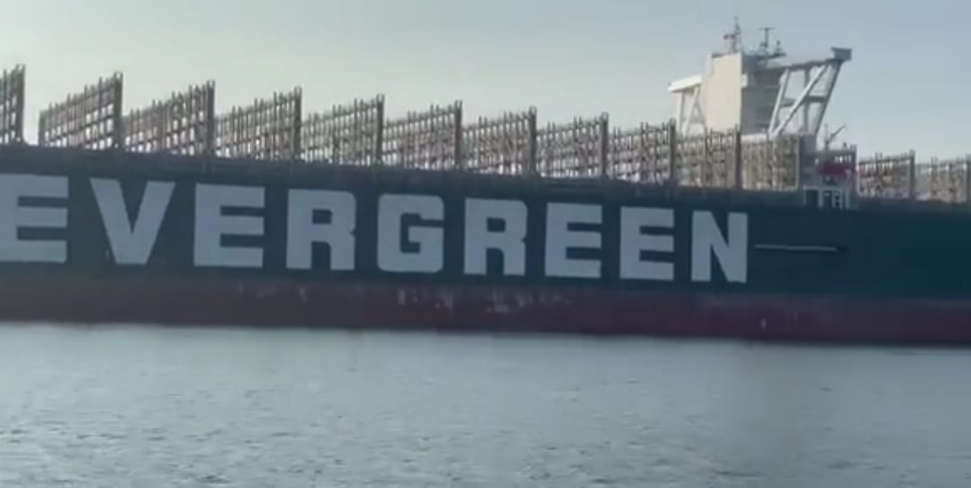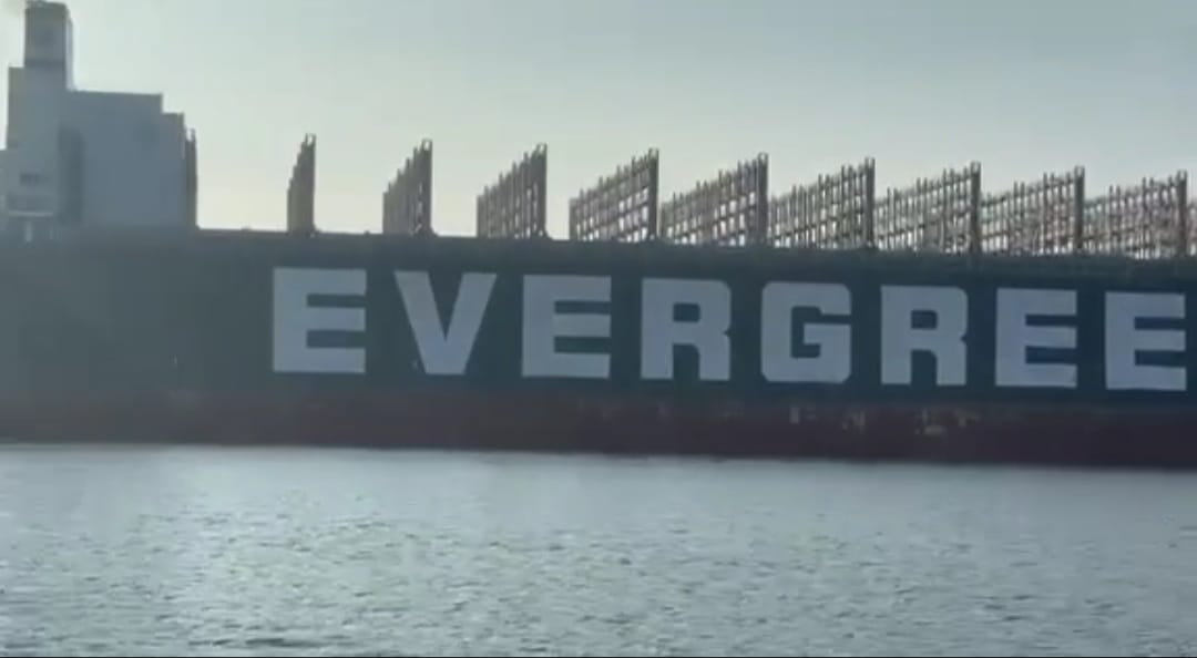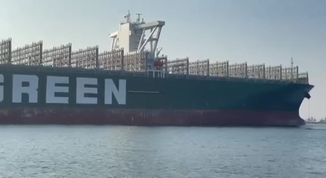 السفينة إيفر جيفن تعبر المجرى الملاحي لقناة السويس متجهة إلى الصين