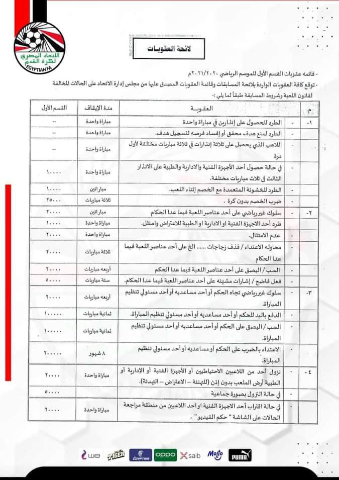 وتنص لائحة اتحاد الكرة على في حال سب الحكم أو البصق عقوبته 8 مباريات وغرامة 100000 جنيه.