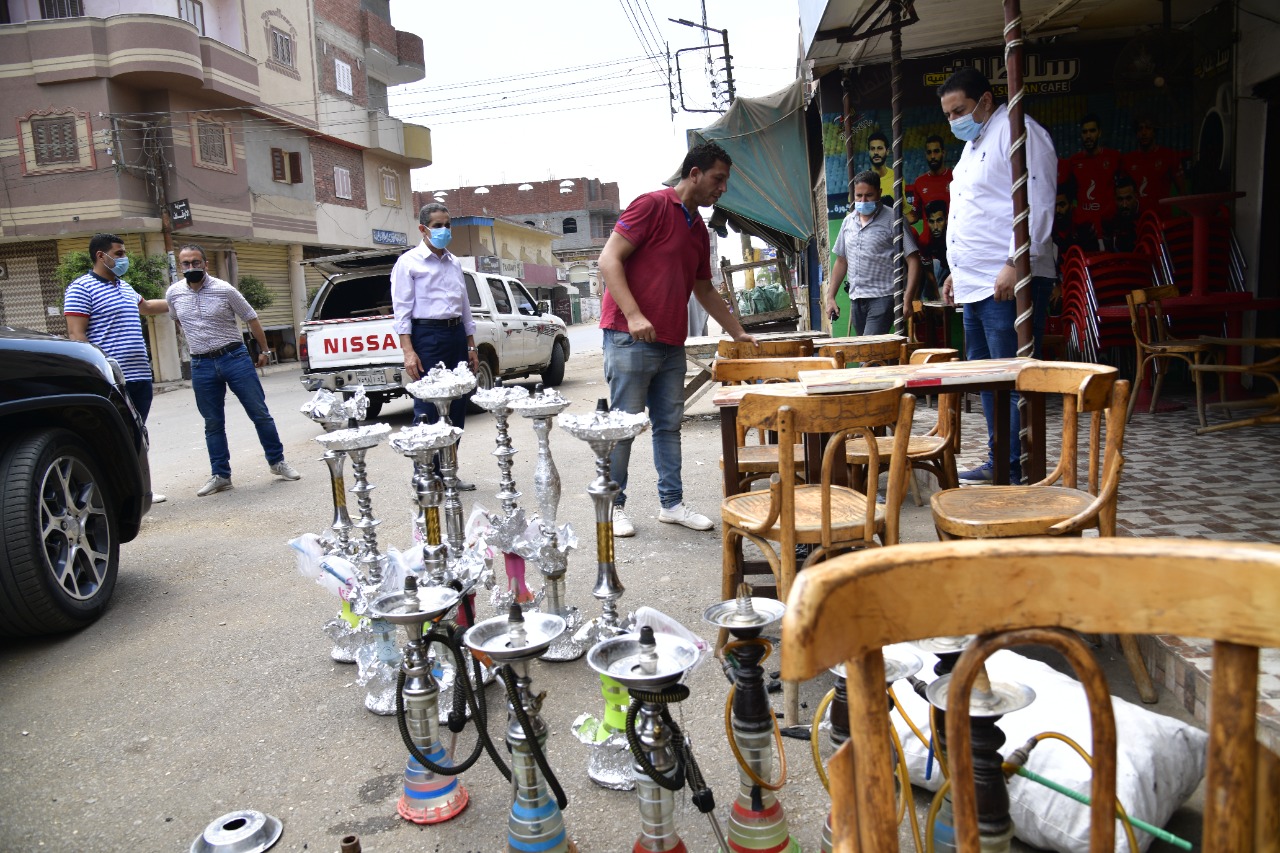 ووجّه المحافظ بغلق عدد من المقاهي والكافتيريات لتقديمها الشيشة، وعدم اتباع القواعد والإجراءات الاحترازية الخاصة بفيروس كورونا، حيث تم مُصادرة عدد 40 شيشة بنطاق مركز المحلة، إضافة إلى رفع كافة الإشغالات والمخلفات التي تُعيق الطريق.