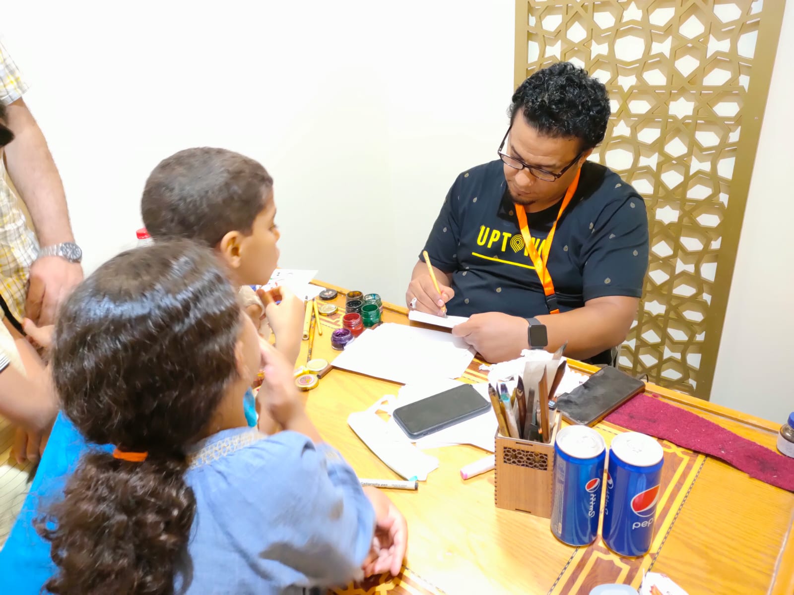 وأوضح الخطاط والفنان التشكيلي، إسماعيل عبده، أن ركن الخط العربي يقدم ورشا لتعليم فن الخط لجميع الأعمار، مؤكدا أن هناك استجابة كبيرة من قبل الأطفال في تطبيق ما يتعلموه، كما نقدم لهم هدايا رمزية عبارة عن بطاقات مكتوب عليها أسمائهم بالخط العربي المزخرف، مما يولد حالة من الفرحة لديهم، وحرص كبير على زيارة جناح الأزهر بشكل مستمر.