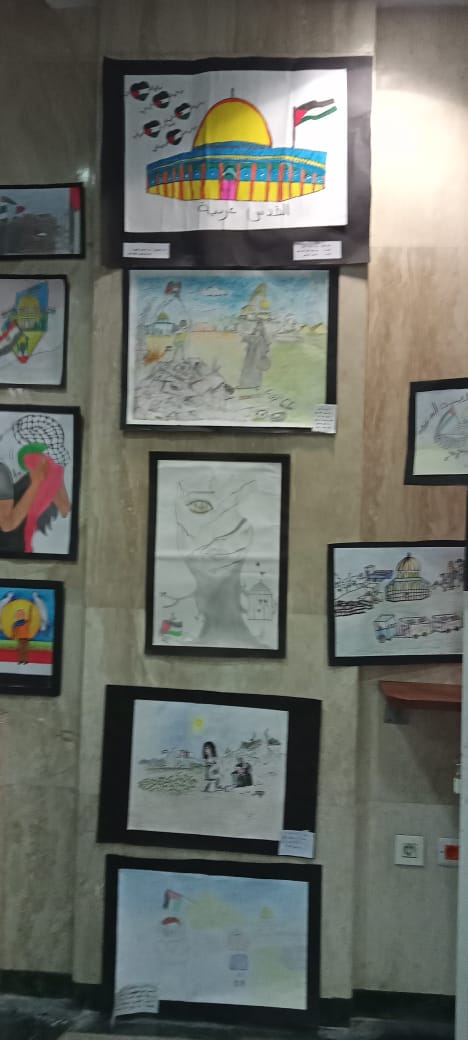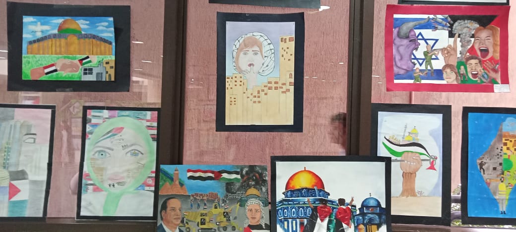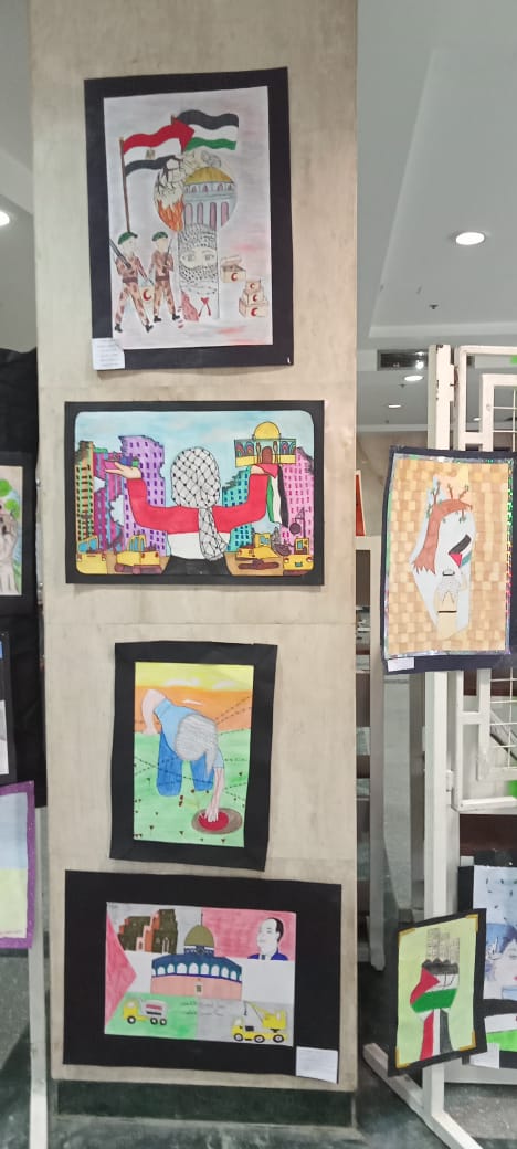 فيما شاركت 24 إدارة تعليمية بأعمال فنية متنوعة، من رسومات فنية رائعة أبهرت الحاضرين كما قدموا عروضًا فنية معبرة عن القضية الفلسطينية من إلقاء وغناء وقصيدة عن فلسطين.