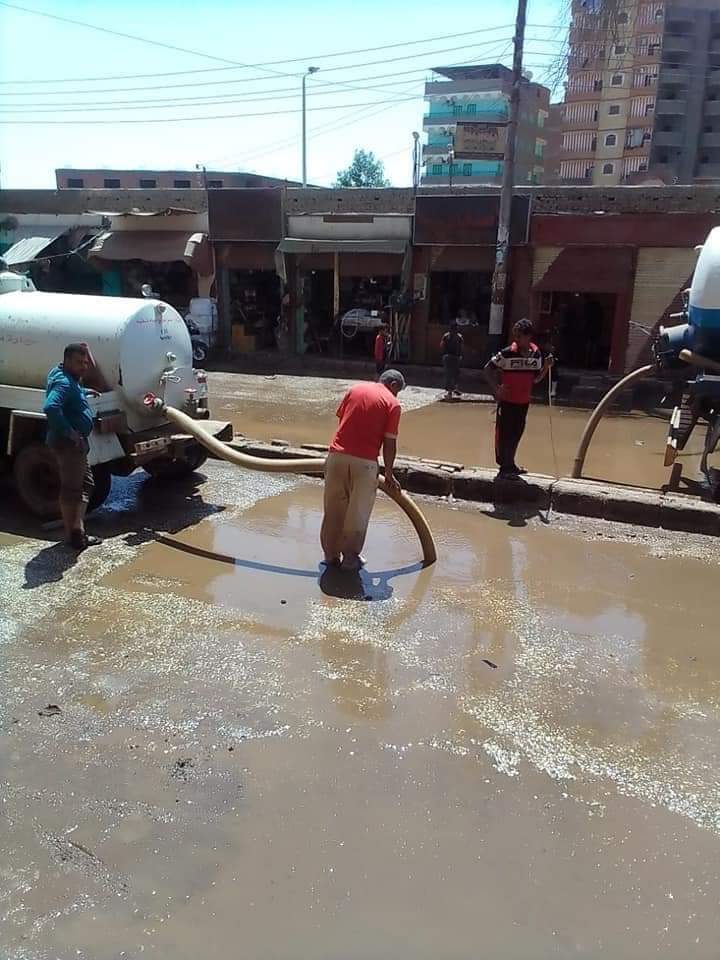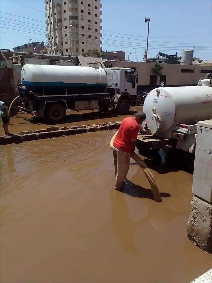تم التنسيق مع شركة مياه الشرب والصرفي الصحي، وتم الدفع بـ3 سيارات لشفط المياه الناتجة عن الانفجار، وجارٍ العمل على إصلاح ماسورة المياه.