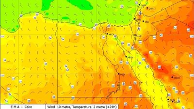 فيما يسود طقس شديد الحرارة على جنوب سيناء وجنوب الصعيد نهارًا، يكون معتدلًا على جميع أنحاء البلاد ليلًا.