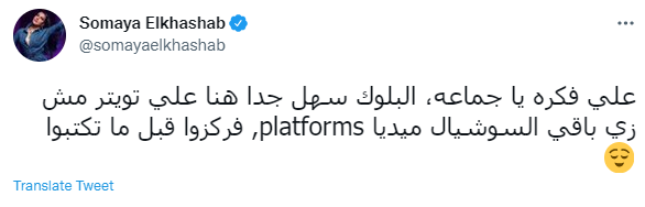 وكتبت سمية في منشور جديد عبر حسابها بمواقع التغريدات القصيرة «تويتر»: «على فكرة يا جماعة، البلوك سهل جدًا هنا على تويتر مش زي باقي السوشيال ميديا platforms، فركزوا قبل ما تكتبوا».
