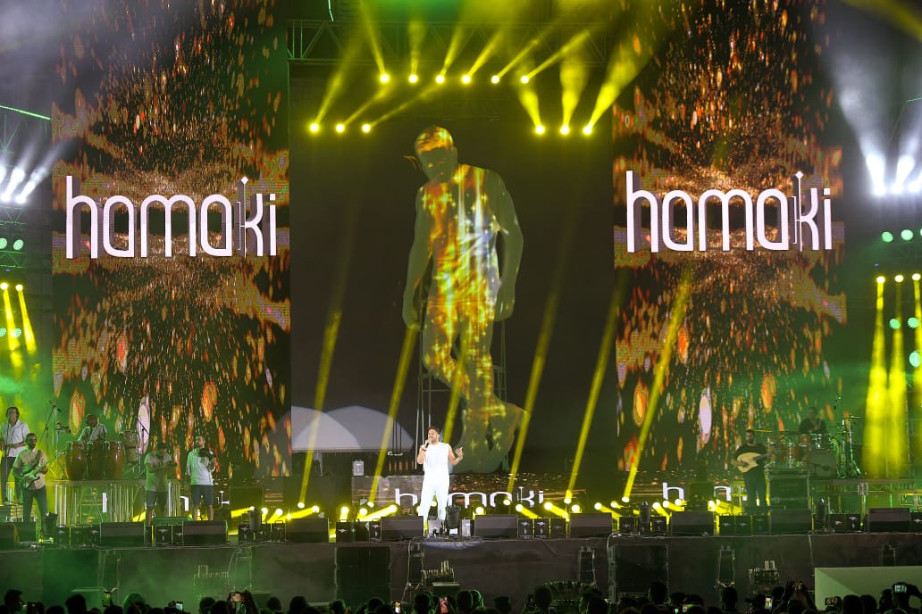 وواصل حماقي الحفل مقدما "استني دقيقة "، "يزلزل"، "ما بلاش" التي قام الجمهور خلالها بفتح كشافات الإضاءة الخاصة بوبيلاتهم التي بدت كالنجوم التي تماشت مع مؤثرات الإضاءة بال led screens ثم أعاد تقديم مقاطع من "مابلاش" دون مزيكا بمشاركة الجمهور الذي بدى كورال صخم بصوت مدوي.
