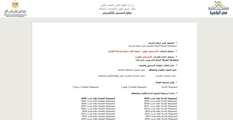 تفاصيل إعلان نتيجة تنسيق المرحلة الأولى 2021