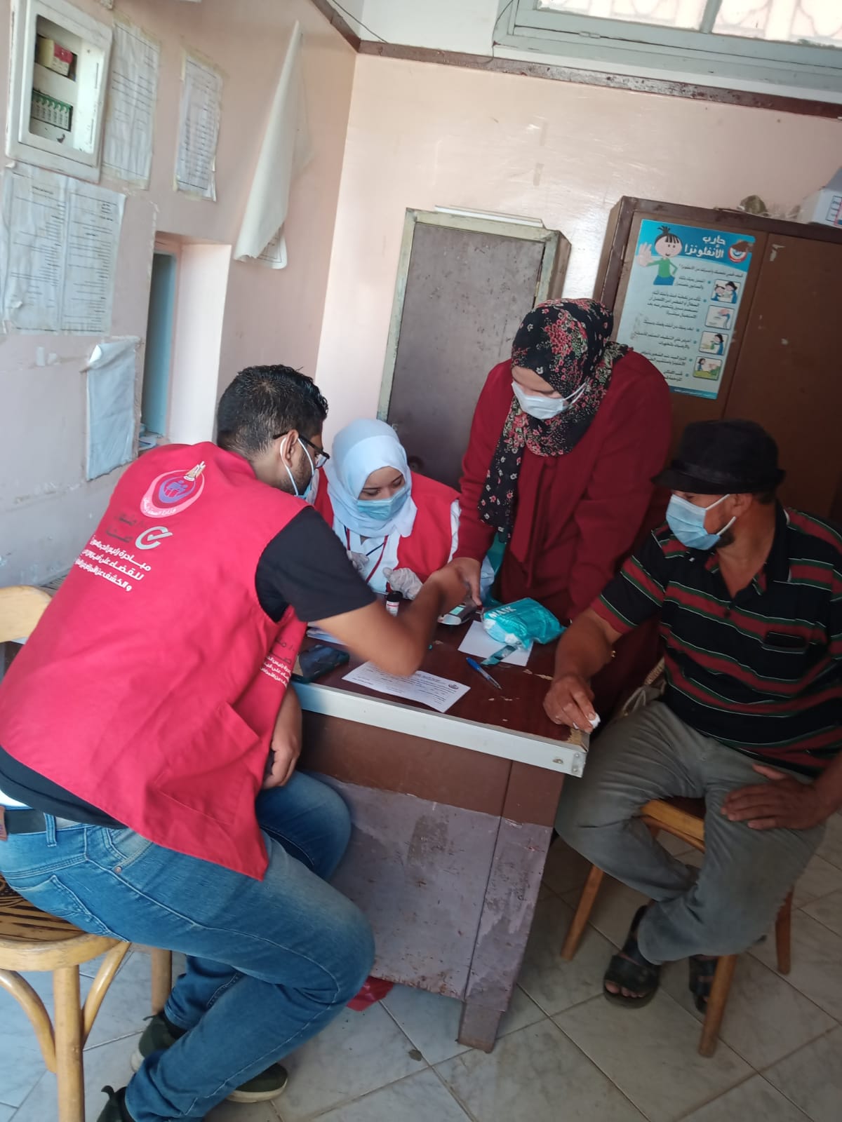 كما يتم عمل فحص السكر التراكمي والدهون الثلاثية للحالات المصابة، وتحويل المصابين إلى أقرب مستشفى في حالة الاحتياج.