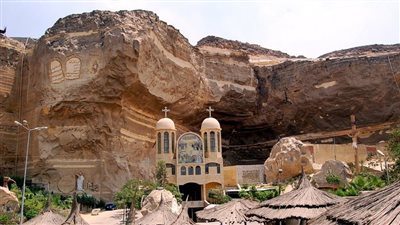 وتضم المنطقة الأثرية، كنيسة السيدة العذراء، وتقع أعلى قمة جبل الطير الملاصق للنيل، وأُنشأت على يد الملكة هيلانه والدة الإمبراطور قسطنطين عام ٣٢٨م، ونحتت الكنيسة في الصخر، والكنيسة لها مدخل يقع جهة الغرب يعلوه أحجار منحوتة مختلفة الأحجام، وتتكون من صحن من ثلاثة أجنحة وخورس يتقدم الهيكل وعلى جانبيه حجرتان، ويتضمن الصحن المعمودية الأثرية المنفذة داخل أحد الأعمدة الحجرية الكبيرة، كما يتوسط صحن الكنيسة حوض اللقان، وفي الناحية الجنوبية الشرقية نجد المغارة أو الكهف الذي مكثت فيه العائلة المقدسة لمدة ثلاثة أيام.