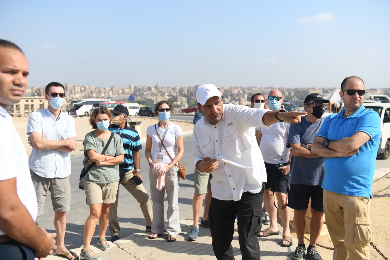 استقبل الوفد أشرف محيي الدين، مدير عام منطقة آثار الهرم، حيث اصطحبهم في جولة بالهرم الأكبر ومنطقتي أبو الهول والبانوراما.