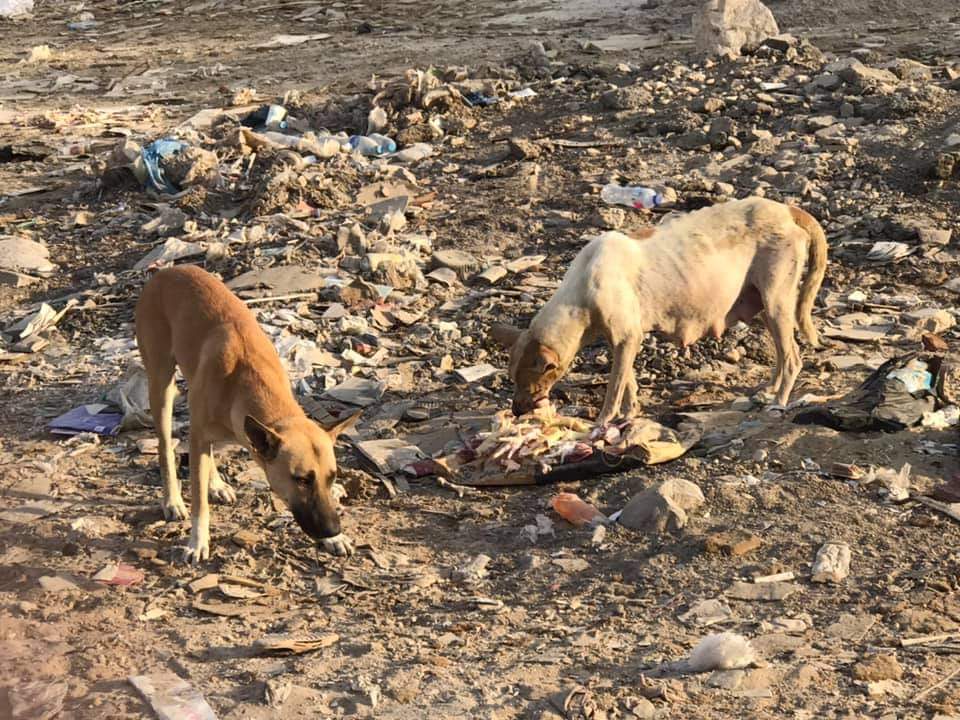 ودشنوا حملة على مواقع التواصل الإجتماعي مطالبون بتدخل الجمعيات المعنية بالحيوانات، لوقف انتشار المجاعة بين كلاب المنطقة، حيث تظهر الكلاب في الصور بالنحافة الشديدة، نظرًا لعدم تغذيتهم.