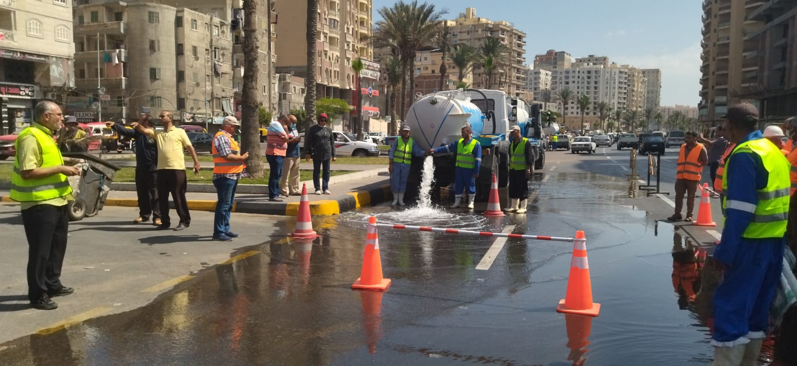 الصرف الصحي بالإسكندرية يختبر جاهزية الشوارع والأنفاق لاستيعاب مياه الأمطار
