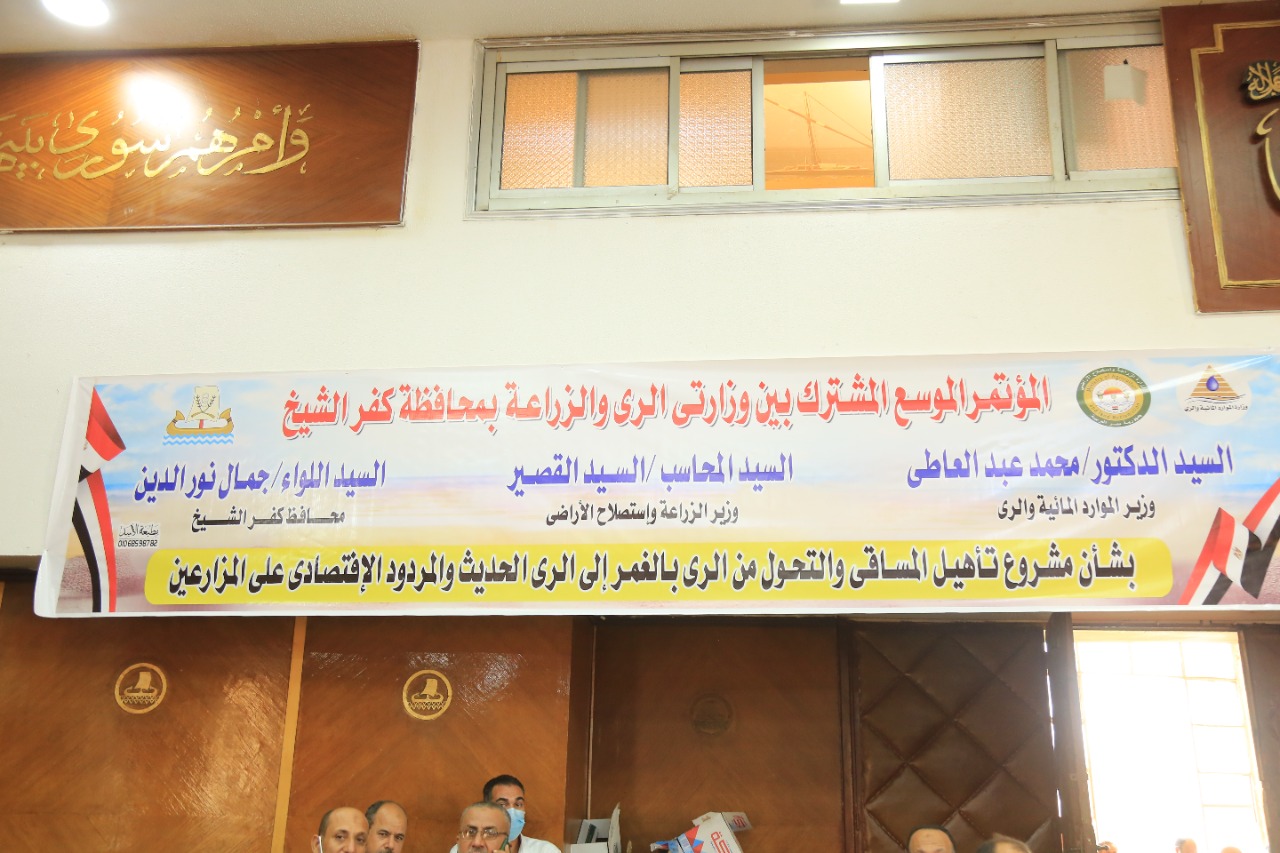 دشن اللواء جمال نور الدين، محافظ كفر الشيخ، الجلسة الافتتاحية للمؤتمر الموسع المشترك بين وزارتي الري والزراعة، التي عقدت بالقاعة الرئيسية بديوان عام المحافظة، بشأن مشروع تأهيل المساقي والتحول من الري بالغمر إلى الري الحديث، ومناقشة مدي المردود الاقتصادي على المزارعين، في إطار توجه الدولة لتطبيق أنظمة الري الحديث.