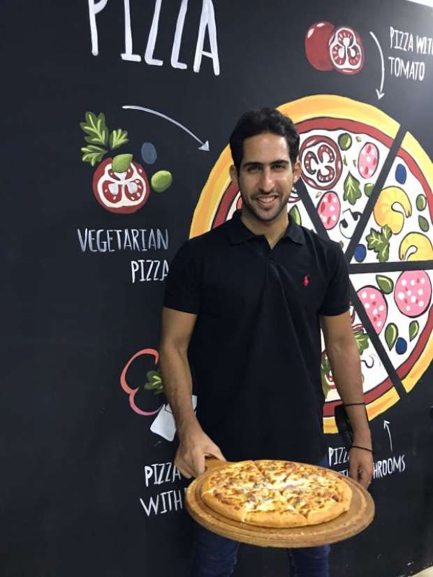 بعد انتهائه من عمله مدرسًا بإحدى الجامعات الخاصة، يتوجه إلى مطعمه الخاص، ليكمل يومه مُنهمكًا في إعداد فطائر البيتزا، إنه الشاب عمرو فهمي، البالغ من العمر 32 عامًا.