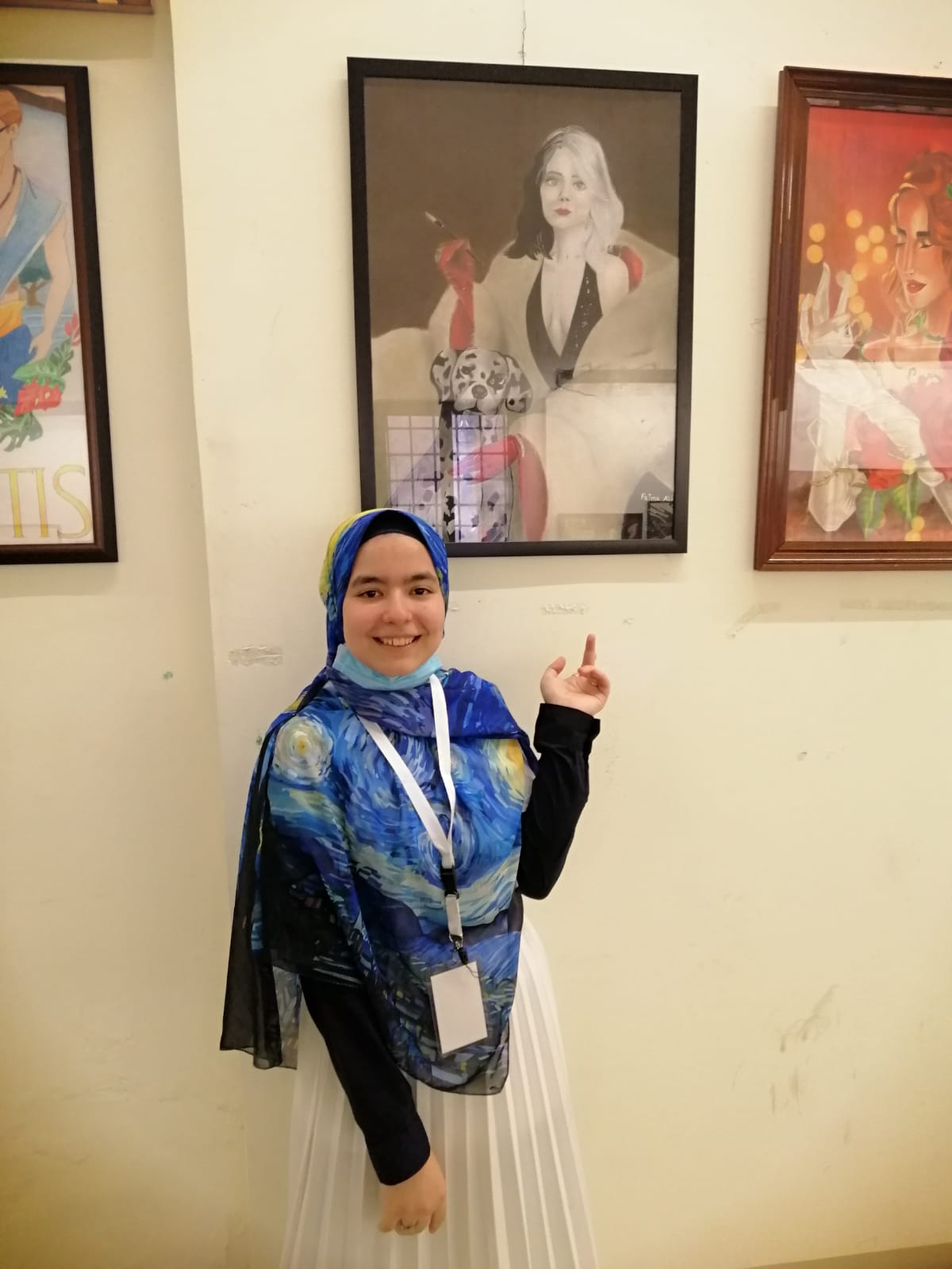 وشاركت فاطمة علي الطالبة بالصف الثاني الثانوي، في فعاليات المعرض بـ لوحة كرولا إحدى شخصيات ديزني المشهورة.