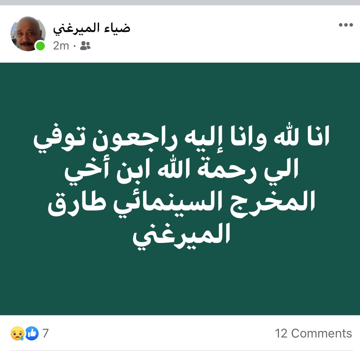 وكتب ضياء الميرغني: «إنا لله وإنا إليه راجعون، توفي إلى رحمة الله ابن أخي المخرج السينمائي طارق الميرغني».