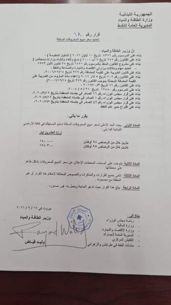 في أول قرار لها.. الحكومة اللبنانية الجديدة تعلن رفع أسعار البنزين 38%