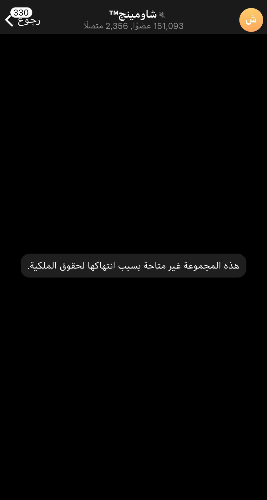 هذه المجموعة غير متاحة بسبب انتهاكها لحقوق الملكية، تظهر هذه الجملة حاليًا على أغلب مجموعات شاومينج عبر تطبيق تليجرام، بعد زعمها لتسريب امتحانات الثانوية العامة على مدار الشهور الماضية.