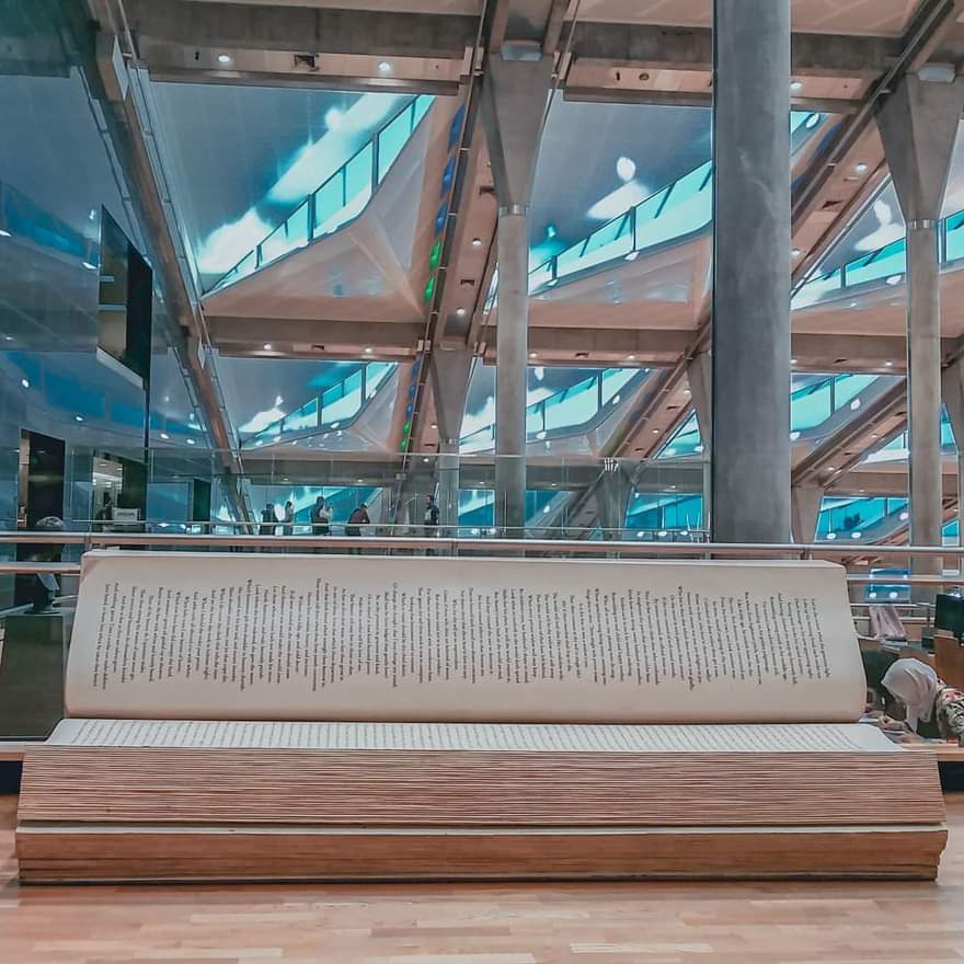 مبيت..«أريكة شكسبير».. مقعد على شكل كتب بمكتبة الإسكندرية لتشجيع الشباب على القراءة