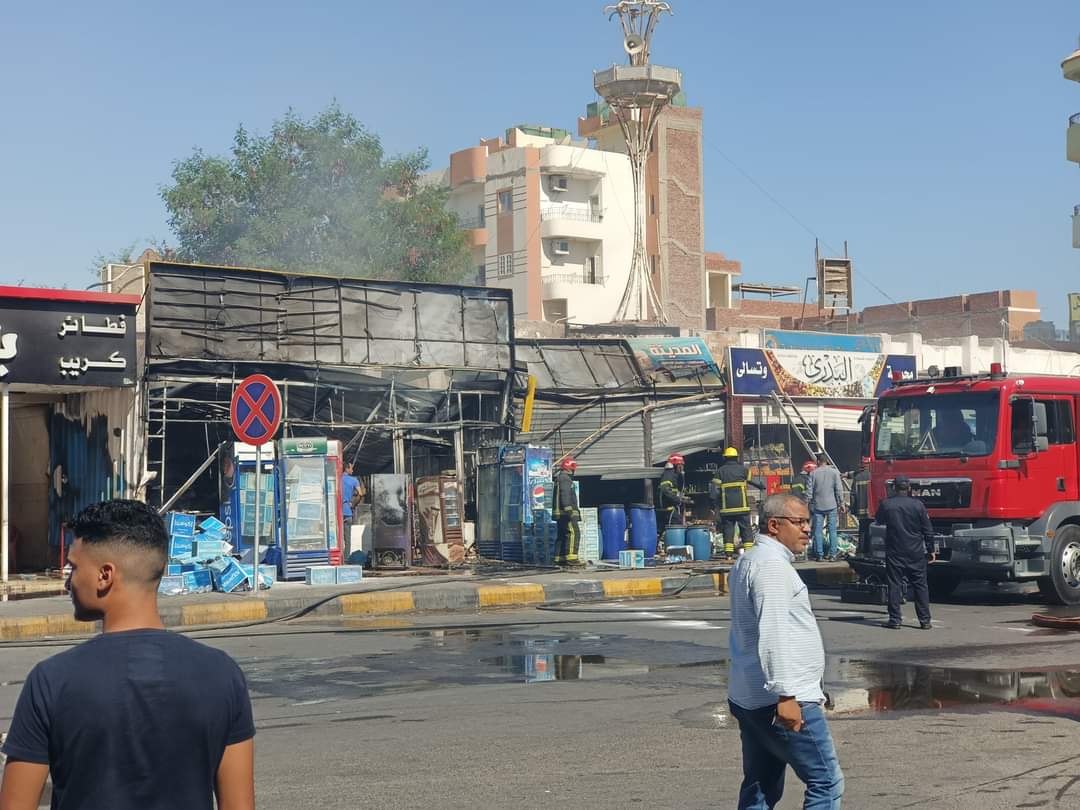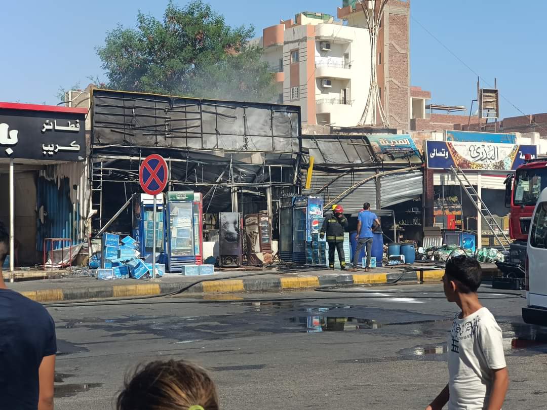 الحماية المدنية تسيطر على حريق نشب بأحد المحلات التجارية في الغردقة| صور