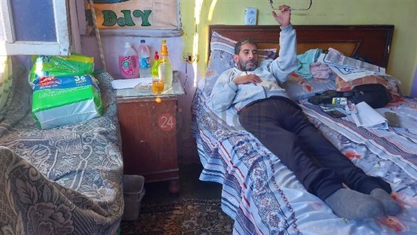 يعاني الشاب الذي لم يتزوج من قرحة فراش شديدة، حتى أن الجلد واللحم بدآ يسقطان من جسده، ولا يملك الشاب من حطام الدنيا سوى بضع جنيهات من الشركة التي كان يعمل بها لا يستطيع بها شراء الحفاضات والعلاج.