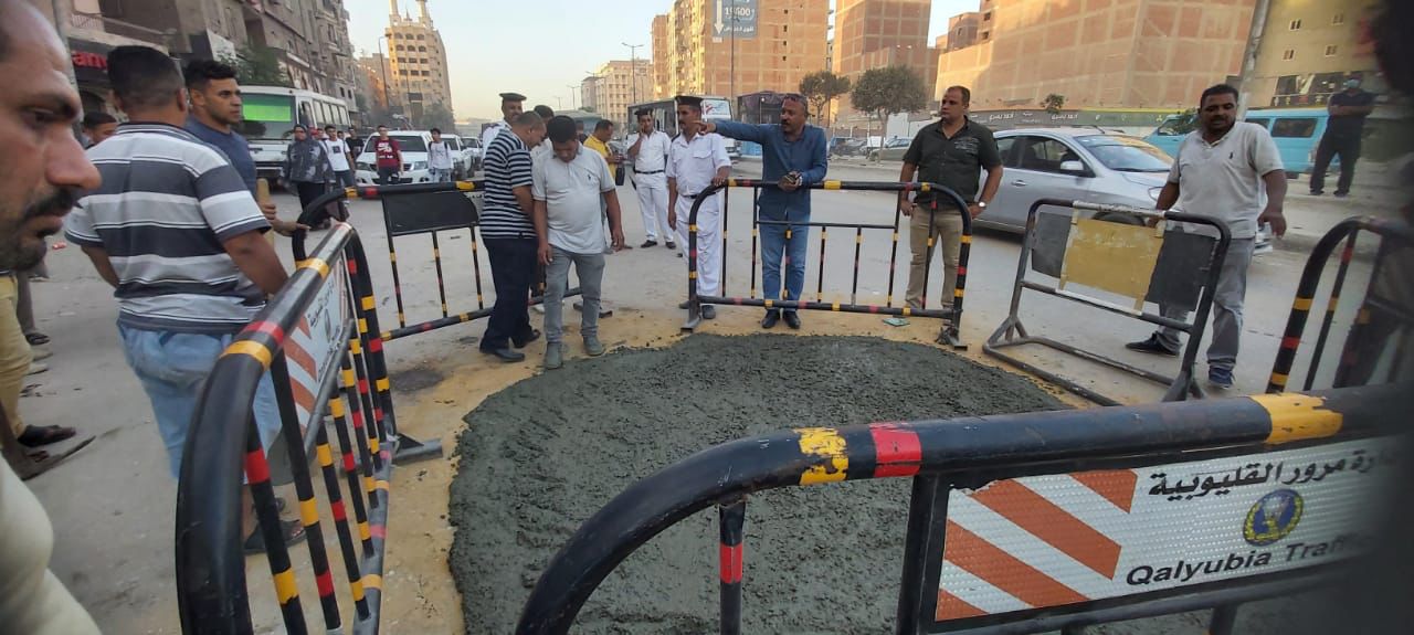 هبوط أرضى بشارع 15 مايو في شبرا الخيمة.. وفرق الطوارئ تواصل المعالجة | صور
