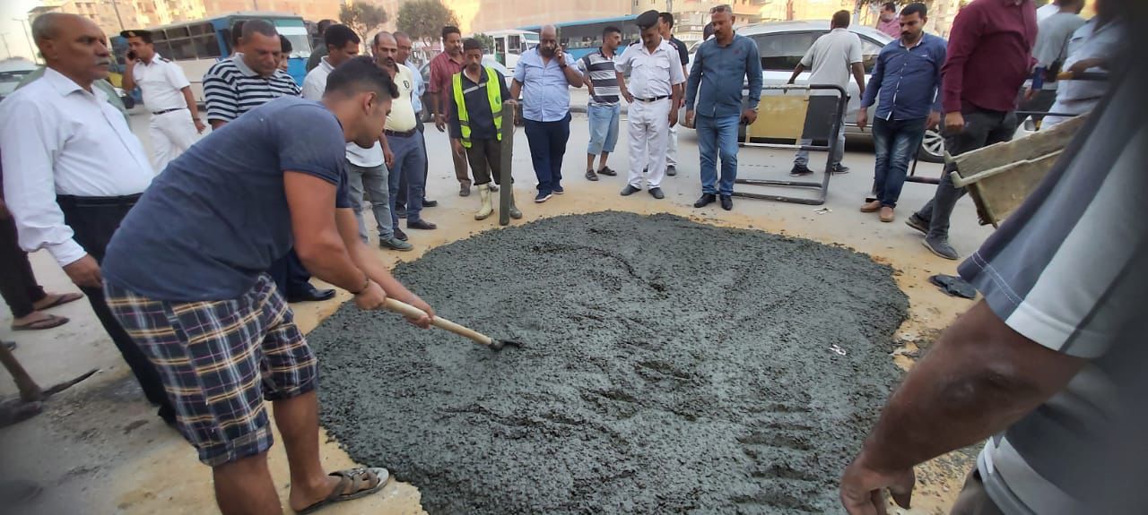 كما تم تغطيتها بطبقه من الخرسانة الجاهزة لإعادة الأمور للسابق وتيسير الحركة المرورية بالطريق والحفاظ على أرواح المواطنين والمركبات.