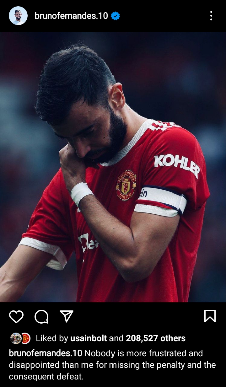 تحدث لاعب فريق مانشستر يونايتد، برونو فيرنانديز، عبر صفحته الرسمية على موقع التواصل الاجتماعي بـ إنستجرام، عن استيائه من تسببه في هزيمة فريقه أمام فريق أستون فيلا في الدوري الإنجليزي.