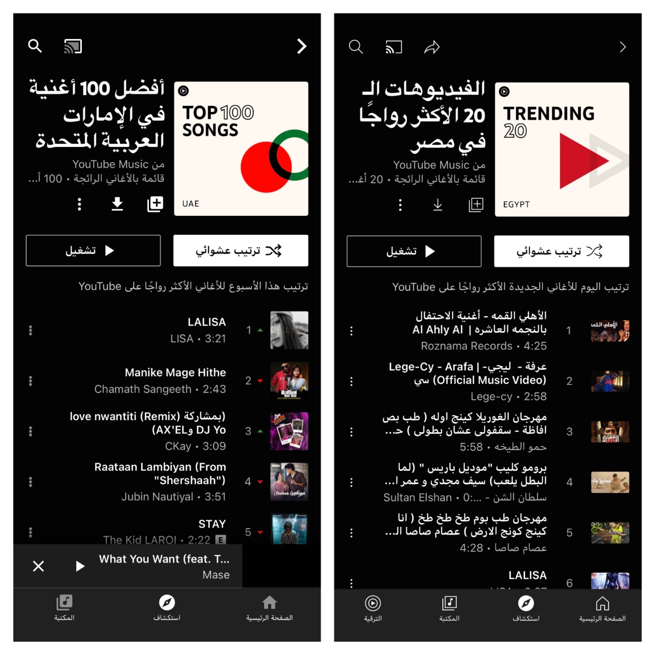 كما يتم تحديث القوائم في يوم الأحد من كل أسبوع، وسوف تتوفر على YouTube Music، وكذلك على الموقع الإلكتروني charts.youtube.com.