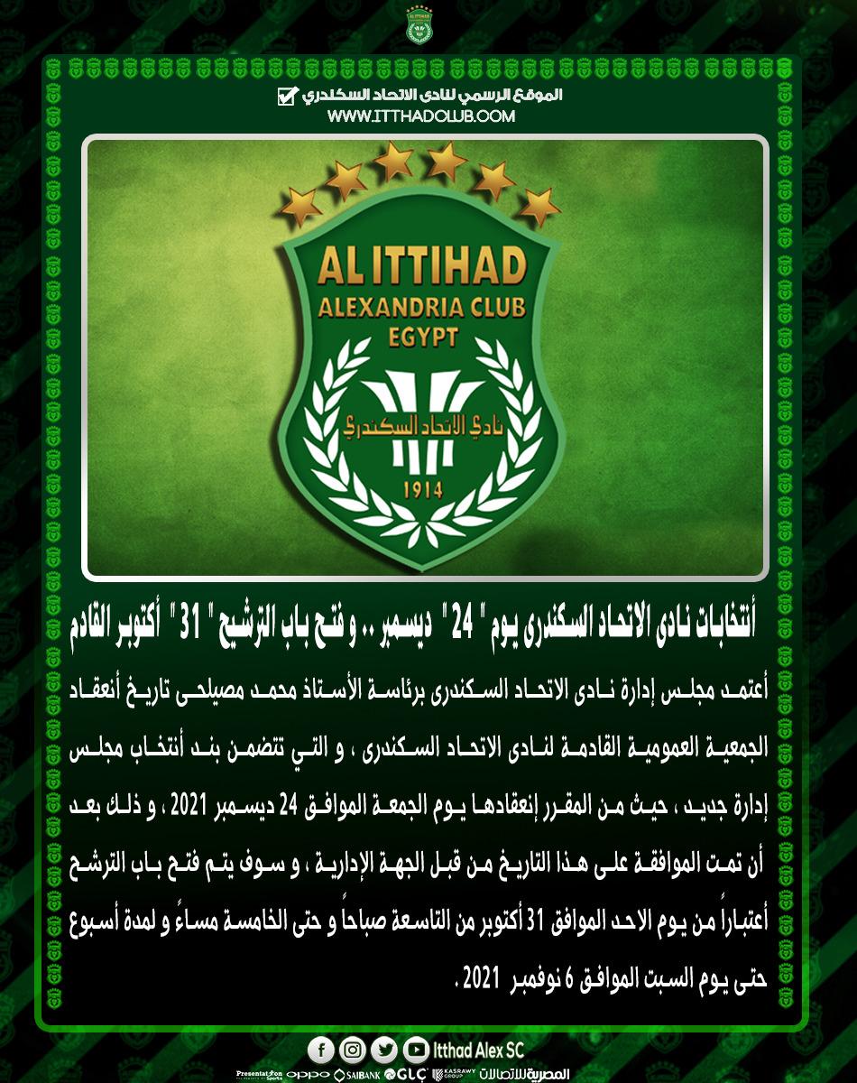 حدد مجلس إدارة نادي الاتحاد السكندري، برئاسة محمد مصيلحي، موعد لانعقاد الجمعية العمومية للنادي، والتي تتضمن بند الانتخابات.