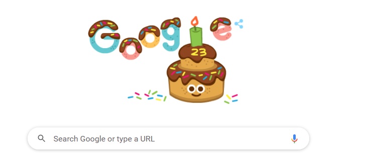 يحتفل موقع البحث العالمي جوجل، بعيد ميلاده الـ 23، اليوم الاثنين، الموافق 27 سبتمبر 2021، حيث غيّر شعاره، وسط احتفالات كبيرة على عملاق البحث العالمي، من خلال كعكة عيد ميلاد عليها رقم 23 وبعض الألوان المبهجة.