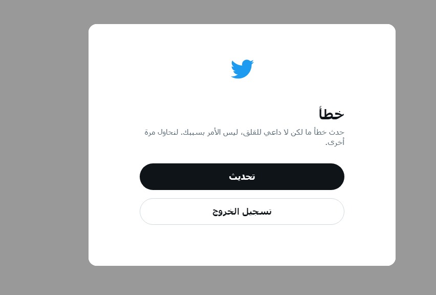 ويرسل تويتر رسالة لمستخدميه: حدث خطأ ما لا داعي للقلق، ليس الأمر بسببك، لنحاول مرة أخرى.
