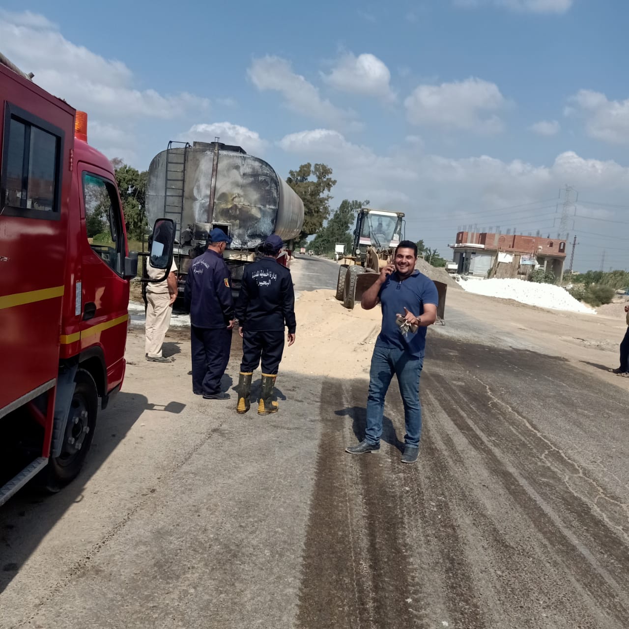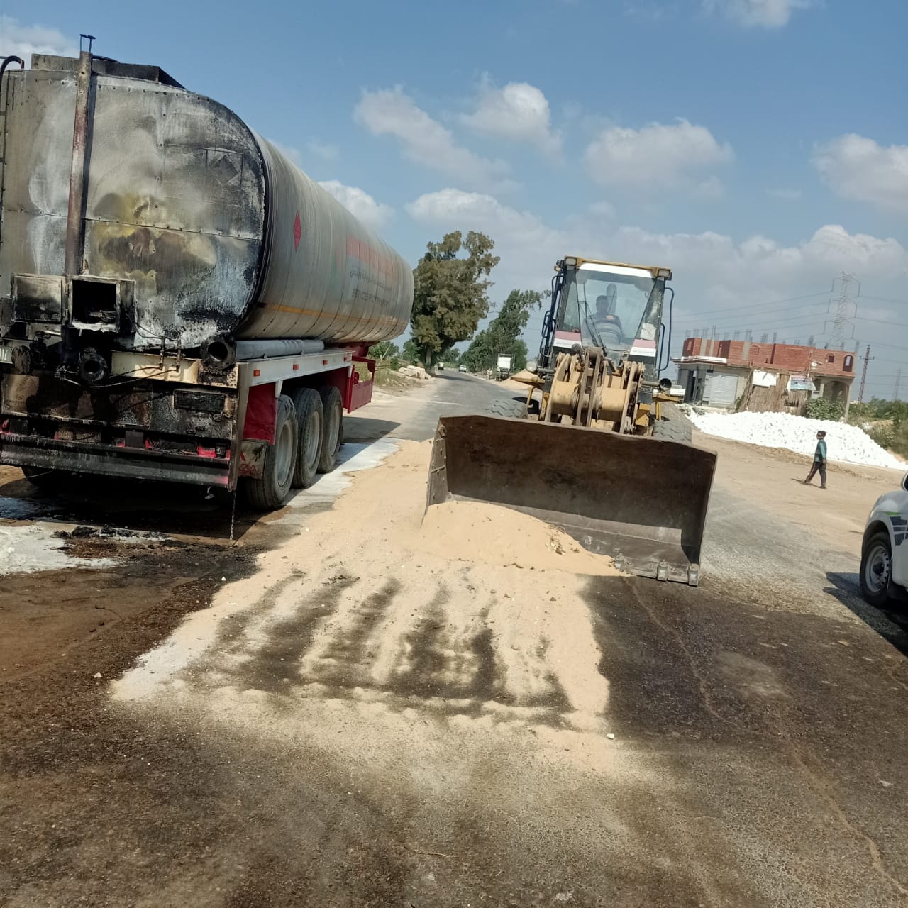 اشتعال النيران في تنك سيارة بمقطورة