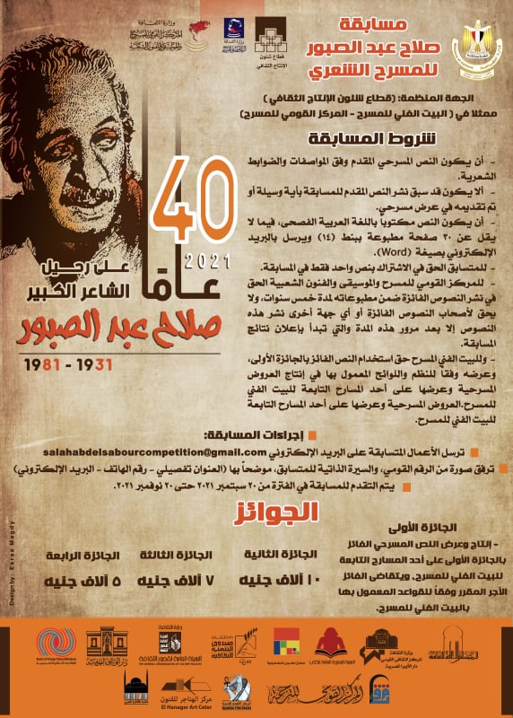 أعلن قطاع شئون الإنتاج الثقافي، برئاسة المخرج الكبير خالد جلال، انطلاق مسابقة صلاح عبد الصبور للمسرح الشعري.