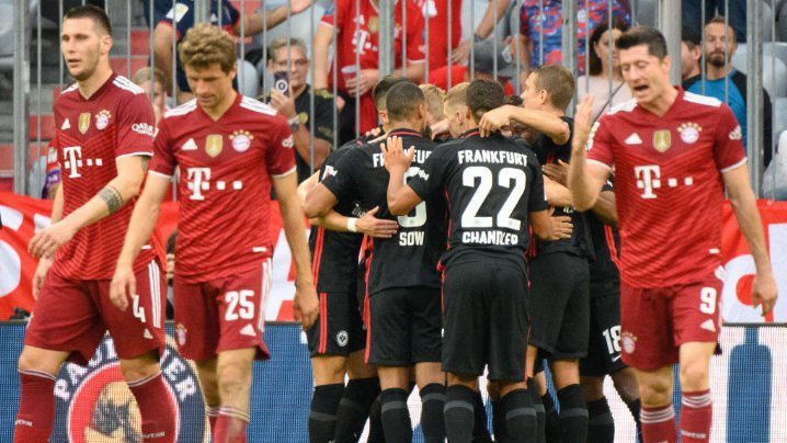 سقط فريق بايرن ميونخ على ملعبه في مسابقة الدوري الألماني لأول مرة منذ عام 2012 أمام ضيفه فريق آينتراخت فرانكفورت، بنتيجة هدفين مقابل هدف، في المباراة التي أقيمت على ملعبه أليانز أرينا، في إطار منافسات الجولة السابعة من مسابقة الدوري الألماني لموسم 2021-2022.