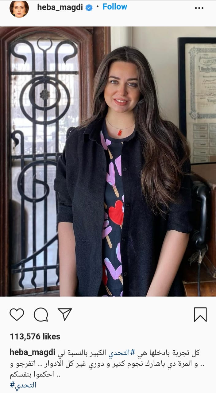لم تفصح هبة عن طبيعة التحدي الجديد الذي تخوضه لأول مرة، لكنها اكتفت بنشر صورة جديدة عبر حسابها على انستجرام، وعلقت عليها قائلة: كل تجربة بدخلها هي التحدي الكبير بالنسبة لي، والمرة دي بشارك نجوم كتير ودوري غير كل الأدوار.. اتفرجوا واحكموا بنفسكم.