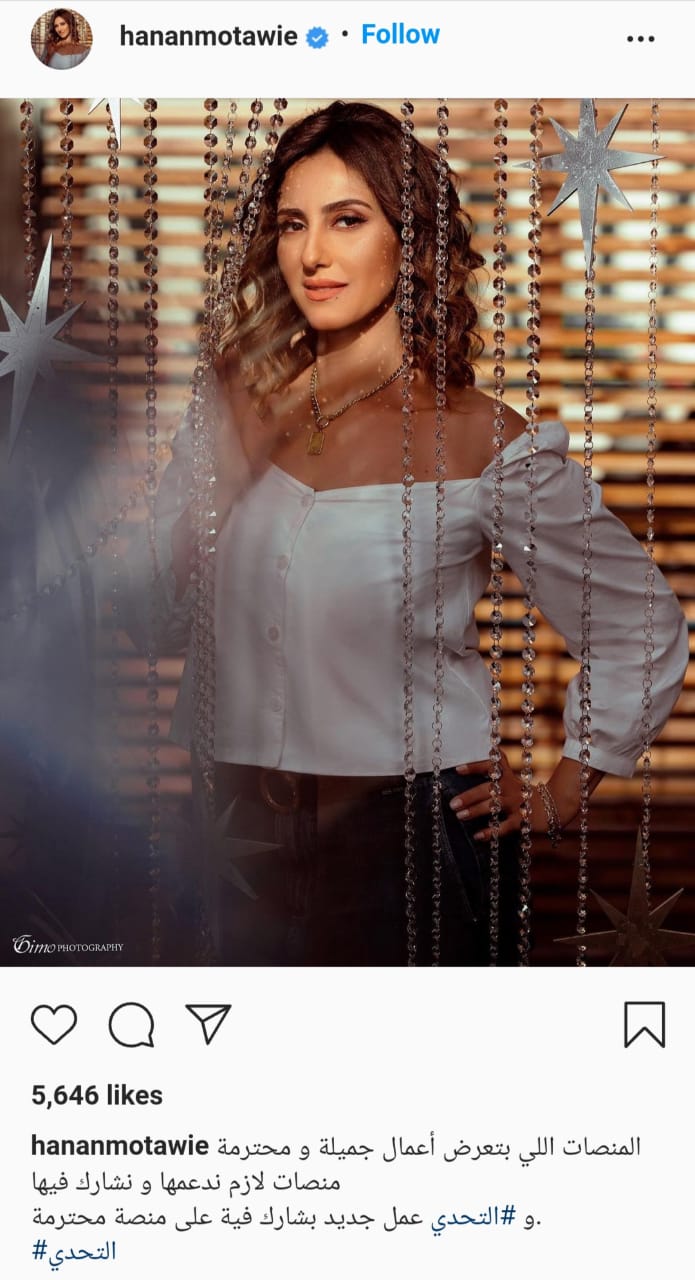 من جانبها، انضمت الفنانة حنان مطاوع إلى التحدي، مُعربة عن دعمها للمنصات التي تقدم أعمالًا جيدة وهادفة، دون أن تكشف هي أيضًا عن طبيعة التحدي، لكنها اكتفت بالتعليق عبر حسابها على انستجرام، قائلة: المنصات اللي بتعرض أعمال جميلة ومحترمة منصات لازم ندعمها ونشارك فيها، والتحدي عمل جديد بشارك فيه على منصة محترمة.