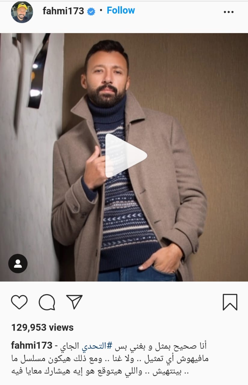 في حين أكد الفنان أحمد فهمي، أن التحديد الجديد ليس في مجال الغناء أو التمثيل، بل أمر جديد تمامًا، ومن يتوقع ماهية هذا التحدي من الجمهور، سيُشارك فيه ضيفًا عبر حسابه على انستجرام، قائلا: أنا صحيح بمثل وبغني، بس التحدي الجاي مافيهوش أي تمثيل ولا غنا.. ومع ذلك هيكون مسلسل ما بينتهيش.. واللي هيتوقع هو إيه هيشارك معايا فيه.