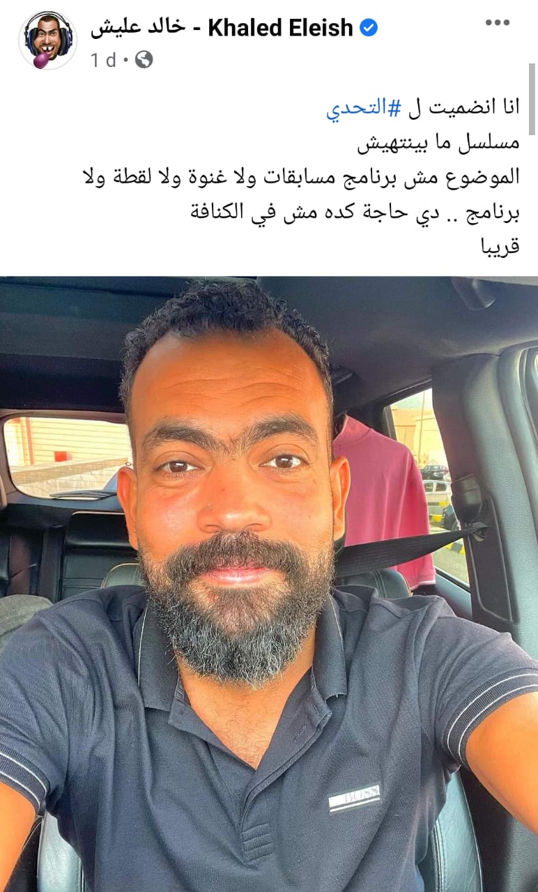 في نفس السياق، أعلن الإعلامي خالد عليش، مشاركته في تحدي جديد من نوعه، لم يسبق أن قدمه من قبل، ومن المقرر الكشف عنه قريبا، موضحا أنه ليس برنامج مسابقات أو برنامج عادي أو حتى أغنية، بل هو مسلسل مبينتهيش، على حد وصفه.