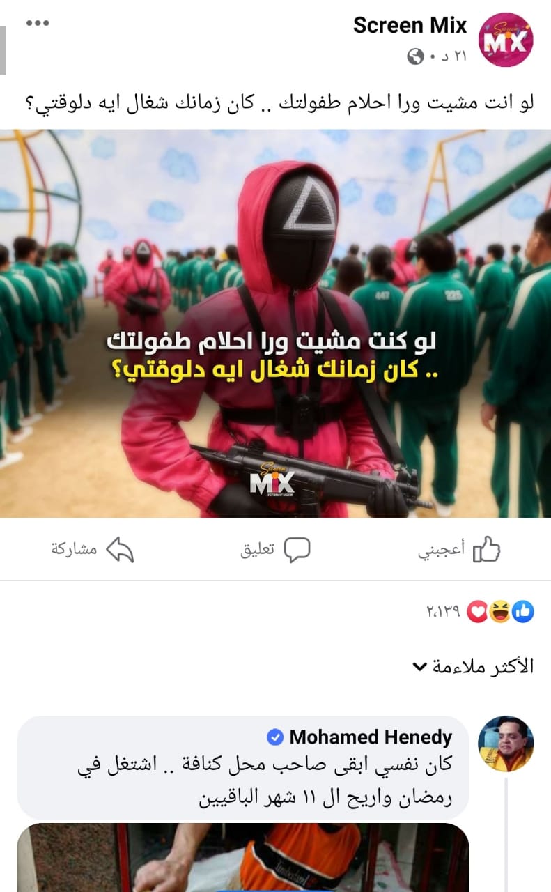 وكتب الفنان محمد هنيدي تعليقًا على إحدى الصفحات، يكشف فيها أحلامه في مرحلة الطفولة، قائلًا: كان نفسي أكون صاحب محل كنافة اشتغل في رمضان، واريح الـ11 شهر الباقيين، وعلى الفور انهالت عليه التعليقات من جمهوره، الذي أعربوا على إعجابهم بهذا التعليق الكوميدي، الذي دائمًا يكتبه هنيدي.
