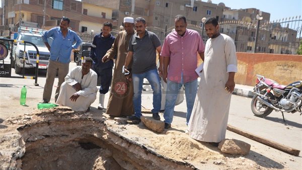 هبوط أرضي إثر تسريب بخط طرد للصرف الصحي بإسنا