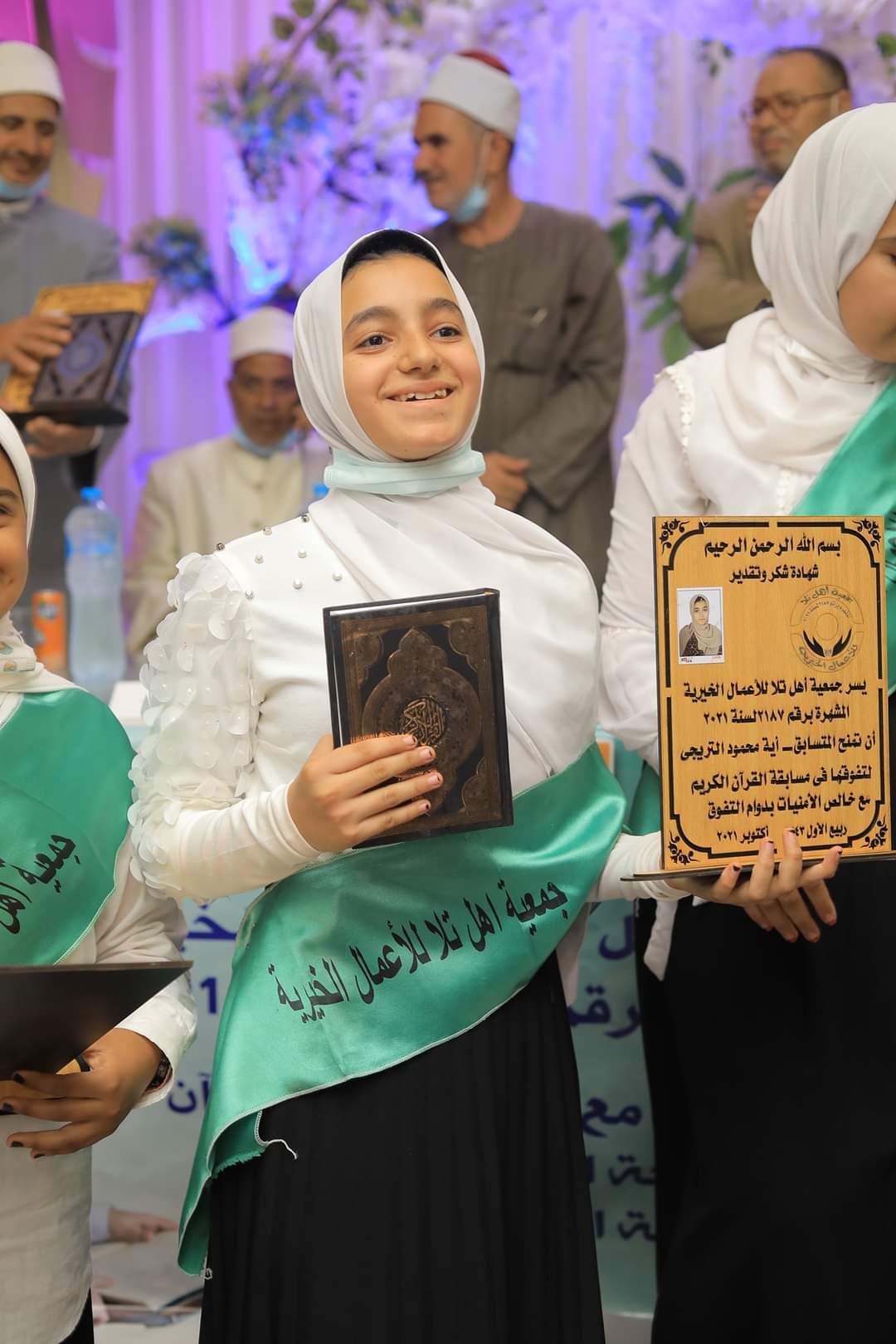 انتهت جمعية تلا للأعمال الخيرية بالمنوفية من مسابقتها في القرآن الكريم بمشاركة 800 طفل من حفظة القرآن الكريم، وكرمت الجمعية عددا كبيرا منهم في حفل يسوده المودة والنفحات الربانية نظرا لتكريم حملة القرآن الكريم من الأطفال.