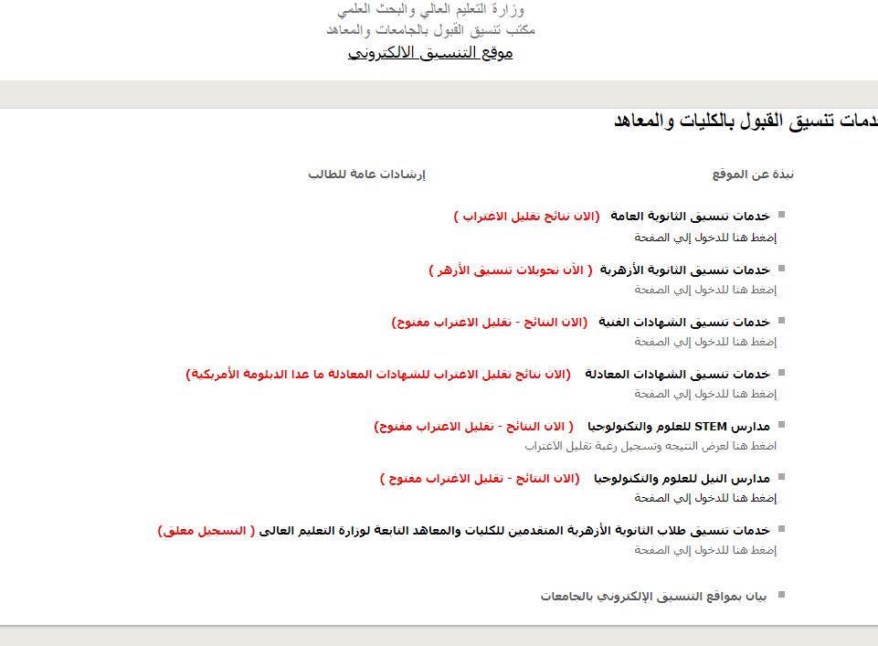 - يقوم الطالب بالضغط على قائمة تنسيق الثانوية العامة.
